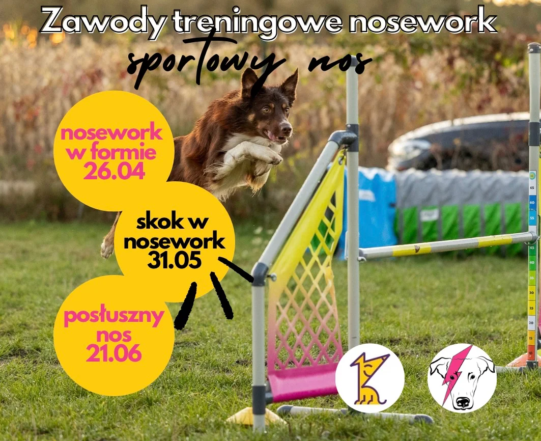 Zapraszamy na serię zawodów treningowych nosework - SPORTOWY NOS. Poniższe zapisy dotyczą drugich zawodów z serii czyli Skok w NOSework. 💪🏽Zawody odbywać się będą na terenie szkoły Koniec Smyczy. Podczas zawodów połączymy sportowe dziedziny razem z noseworkiem. Plan zawodów:2. Skok w nosework - jeden, wielopróbkowy ring (mix zapachów), do którego dostaniecie się… po pokonaniu krótkiego toru agility - stacjonaty + tunele (wysokość 15 cm dla każdego psa). Szybkość, zwinność oraz praca nosem w pobudzeniu!3. Posłuszny nos - jeden, wielopróbkowy ring (mix zapachów), do którego dostaniecie się pokonując tor Rally-O. Tu liczy się precyzja, posłuszeństwo oraz skupienie. Możesz wziąć udział w jednym, dwóch lub wszystkich wydarzeniach. Planujemy klasyfikację łączoną z wszystkich zawodów, zaś po każdych zawodach najlepsze zespoły otrzymają medale i upominki. ✨Ilość próbek oraz długość przeszukania zostanie wskazana w mailu organizacyjnym, potwierdzona przed wejściem na ring. Minimalna ilość próbek to 10. Minimalny czas przeszukania to 8 minut.Koszt zawodów to 120 zł / od zespołu. Terminarz zawodów:26.04 niedziela31.05 niedziela21.06 niedziela